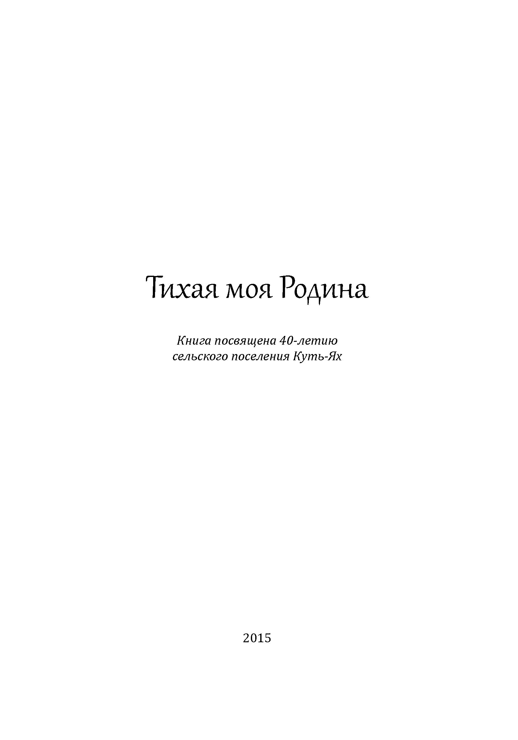 Книга посвященная 40-летию сельского поселения Куть-Ях - Тихая моя Родина. 2015 год.