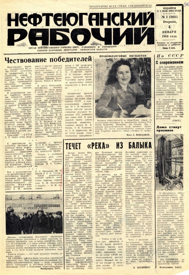 Оцифрованные издания газеты "Нефтеюганский рабочий" за 1983 год