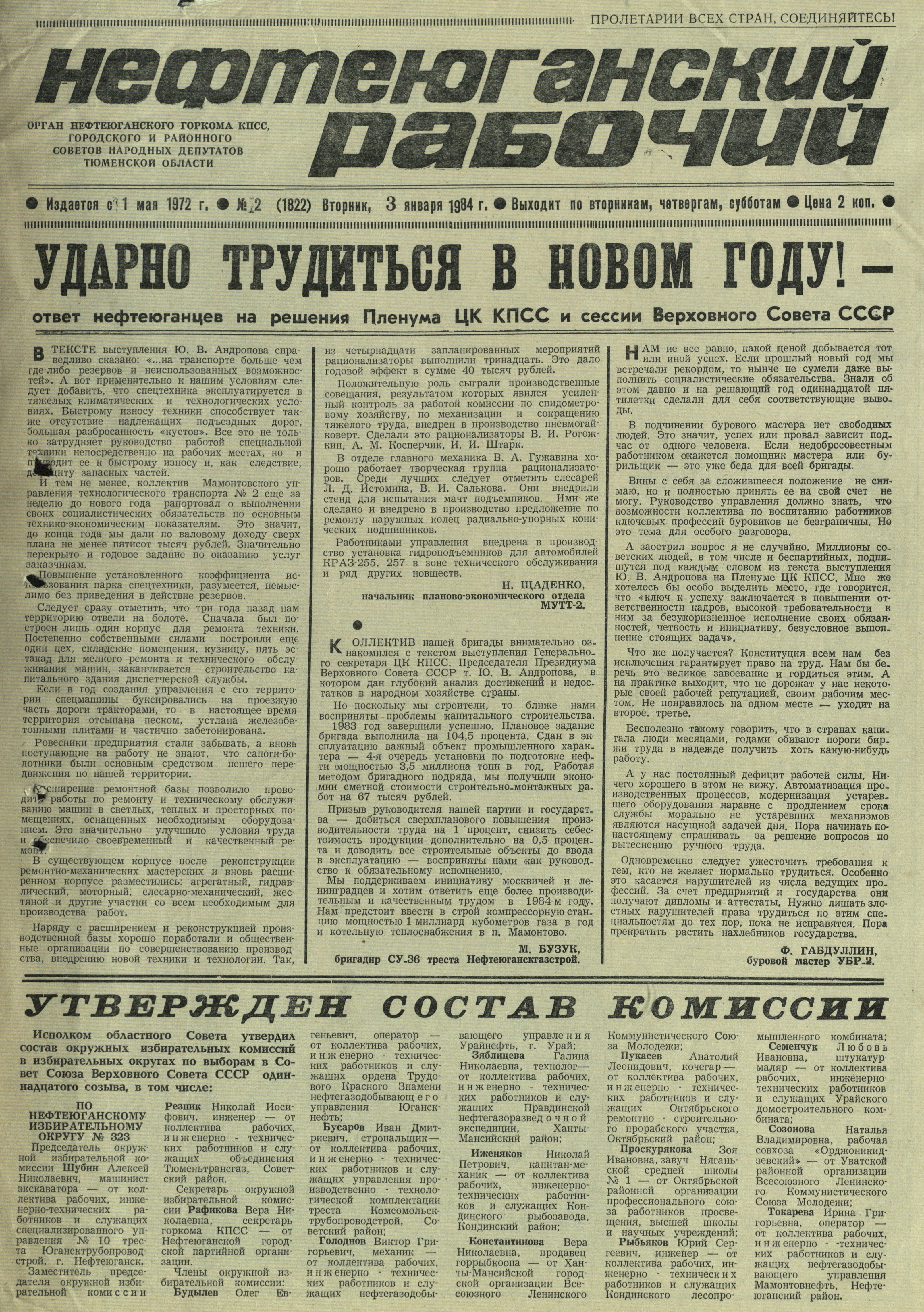 Оцифрованные издания газеты "Нефтеюганский рабочий" за 1984 год