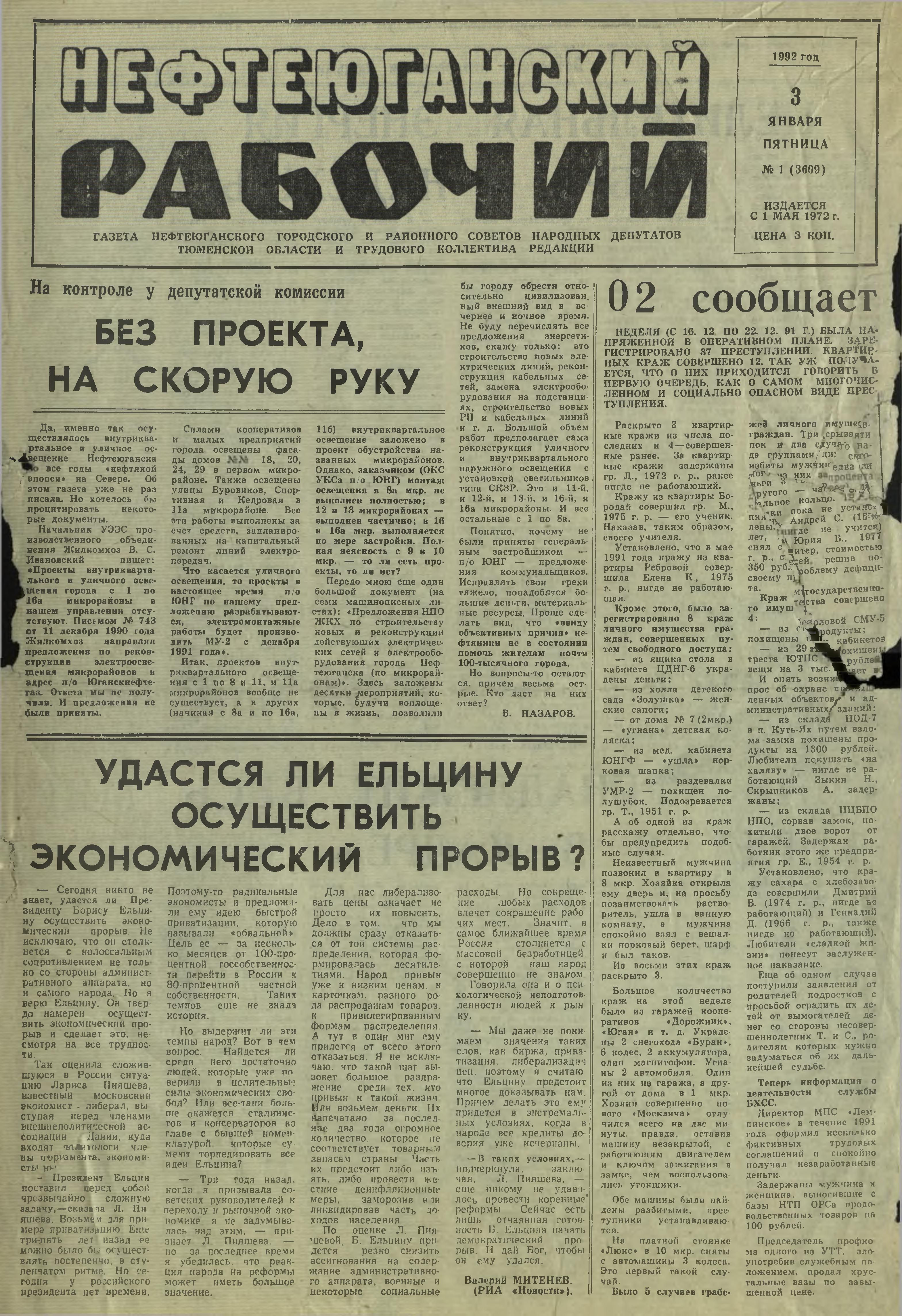 Оцифрованные издания газеты "Нефтеюганский рабочий" за 1992 год