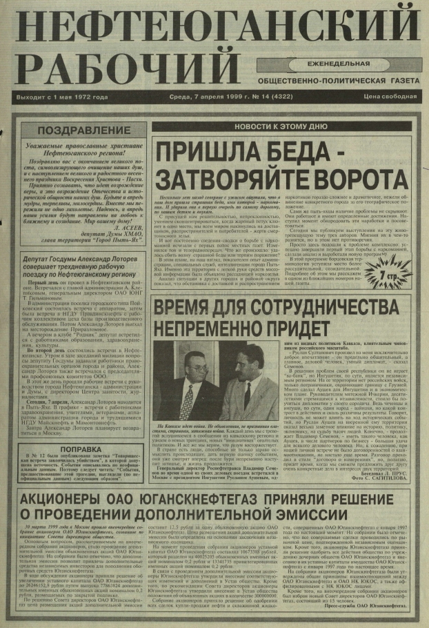 Оцифрованные издания газеты "Нефтеюганский рабочий" за 1999 год