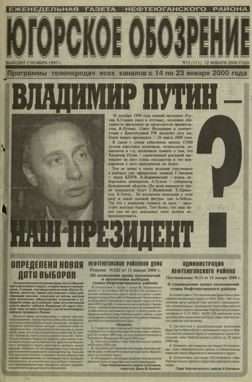 Оцифрованные издания газеты "Югорское обозрение" за 2000 год: