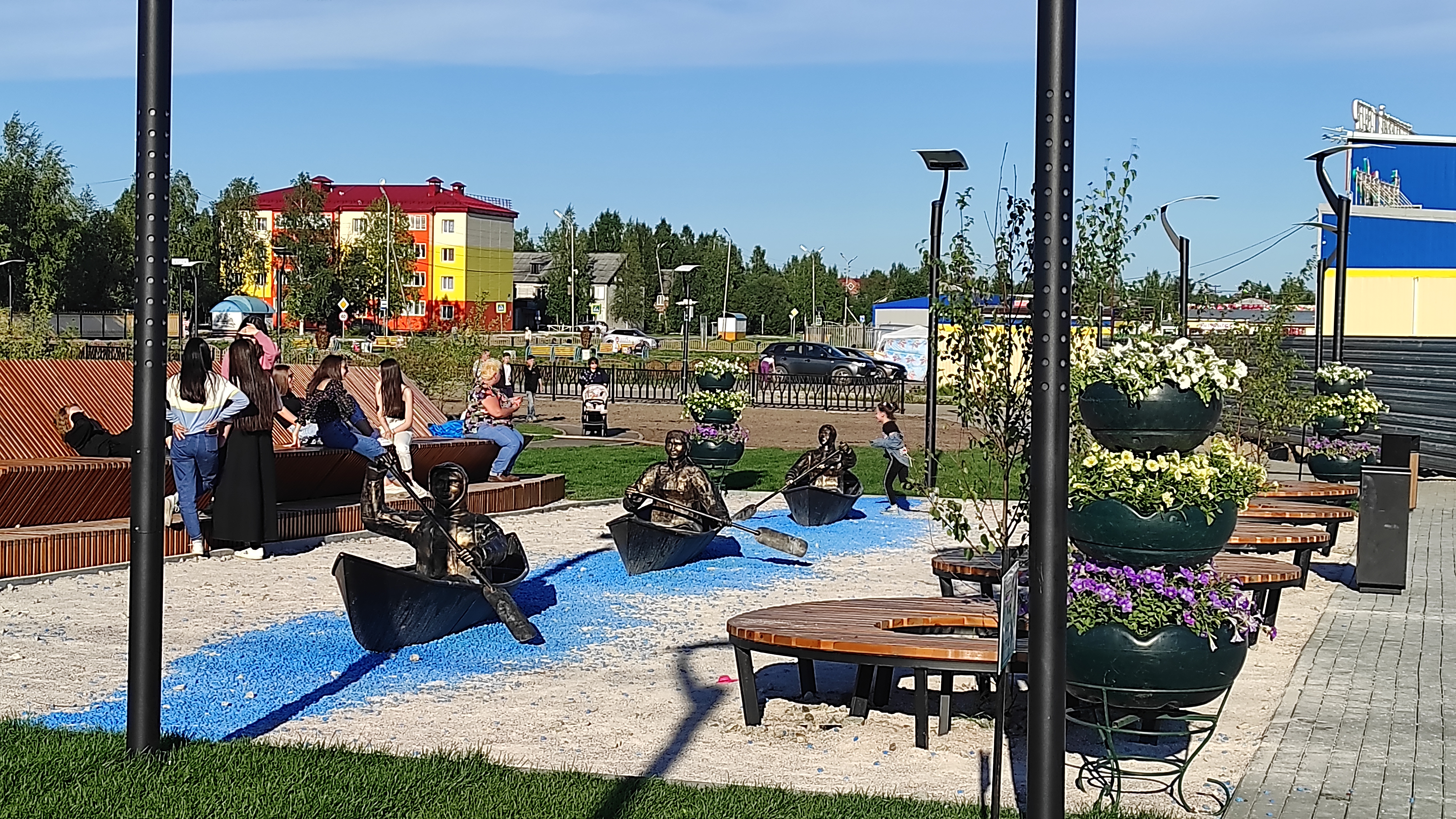 Народы ханты, манси, ненцы издревле заселяют богатейшую территорию Нефтеюганского района. Самобытная культура и своеобразный быт обско-угорских народов отражены в экспозиции «этнодеревня» Перед нами скульптуры рыбаков в национальных одеждах, плывущих на обласах (сибирская гребная лодка-долблёнка) по символичной реке Времени.