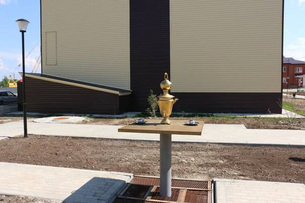 «У самовара». Такое название неслучайно – главным украшением сквера стали три небольших фонтана, центральный из них имеет вид самовара с чайными чашками вокруг. В сквере обустроены прогулочные дорожки, установлены вазоны для цветов, уличное освещение.
