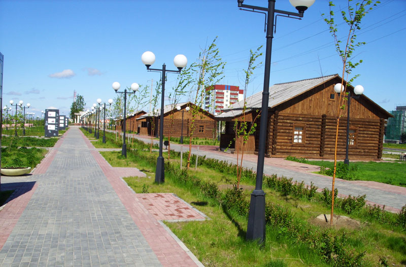Аллея вдоль зданий выставочного центра стала одним из излюбленных мест отдыха горожан и гостей города. Здесь в открытом доступе на тумбах расположена фотовыставка «Хроника сибирской нефти. Начало пути: Нефтеюганск».