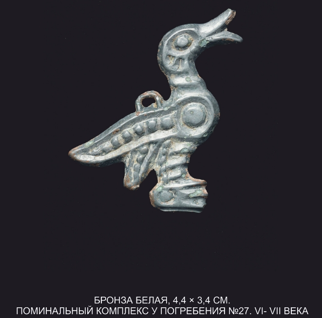 Таким образом, датировка исследованных погребений в целом укладывается в VII – 3‑ю четв. VIII в. К поминальному комплексу относится ряд предметов, обнаруженных вне погребений: стеклянные и каменные бусины, обнаруженные в скоплении; височные кольца с привесками, завернутые в мех; бронзовые плоские гривны, керамический сосуд с бронзовой ложечкой, и др. Аналогичная ситуация с распределением находок была зафиксирована на Барсовском V могильнике зеленогорской культуры и погребально-поминальных комплексах кучиминского времени.