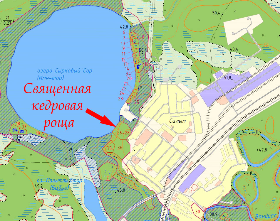 Объект археологического наследия Ансамбль «Священная кедровая роща» входит в комплекс памятников на берегу оз. Сырковый Сор (пос. Салым), расположенного в бассейне р. Бол. Салым.