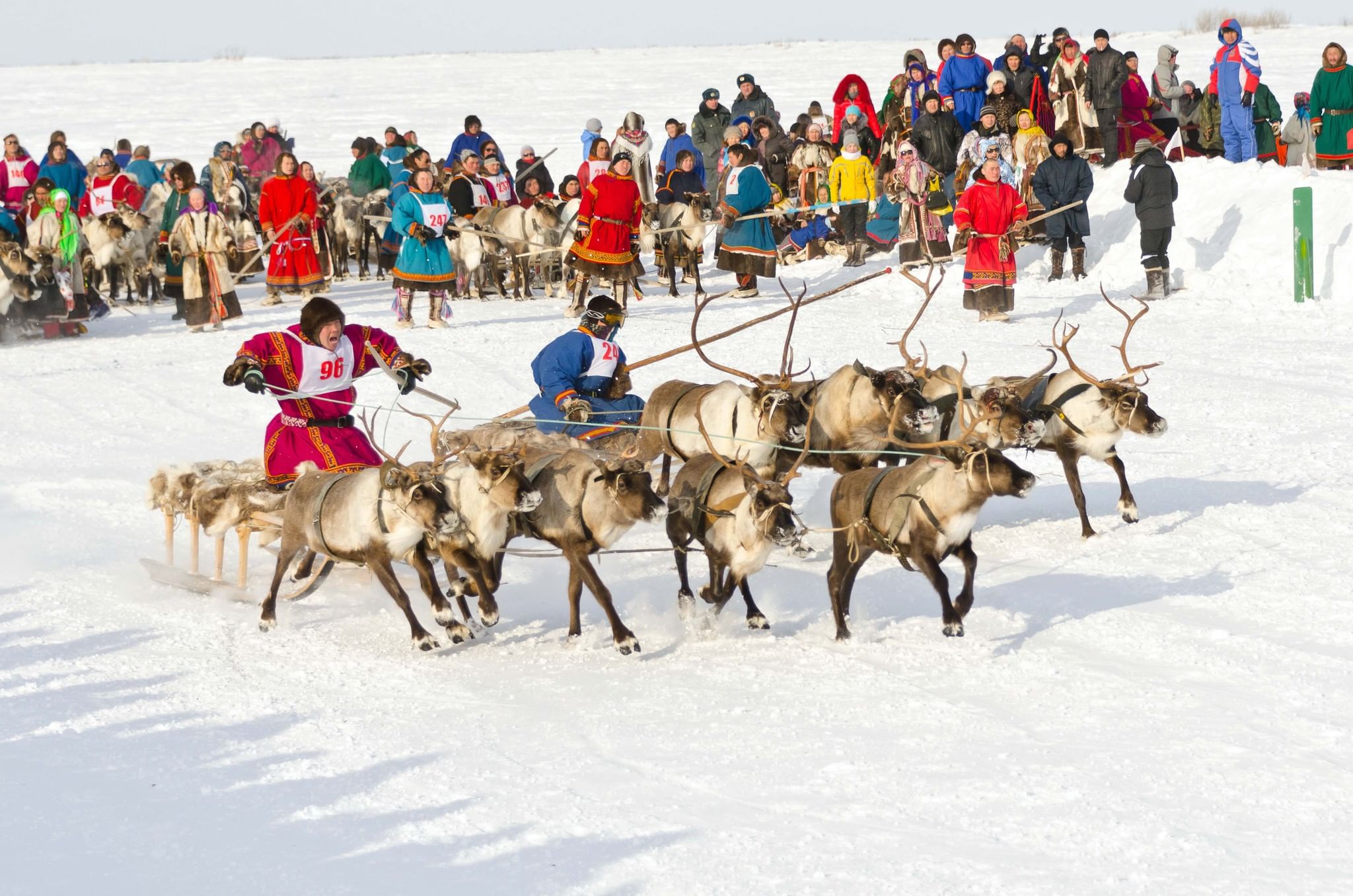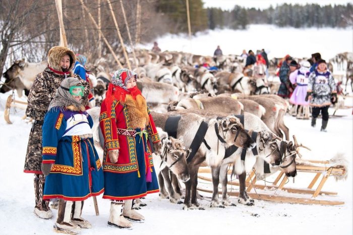 В феврале-марте проводится – День оленя или День оленевода – это новая традиция. Десятки оленьих упряжек съезжаются к месту празднования в тундре. Это праздник ловкости и смелости. Главное зрелище здесь – разнообразные гонки на оленях – рысью, махом, стоя на нартах, на лыжах за оленями и на оленьей шкуре. Одновременно с гонками проходят соревнования по традиционным северным видам спорта: прыжки через нарты, бег на охотничьих лыжах, стрельба, метание топора на дальность.