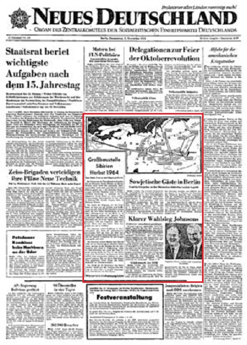 ps. мы проверили достоверность информации и оказалось у газеты "Neues Deutschland", выпускашейся до 1990 года на территории восточной Германии, существует оцифррованный архив и в нём есть заметка от 5.11.1964 года: