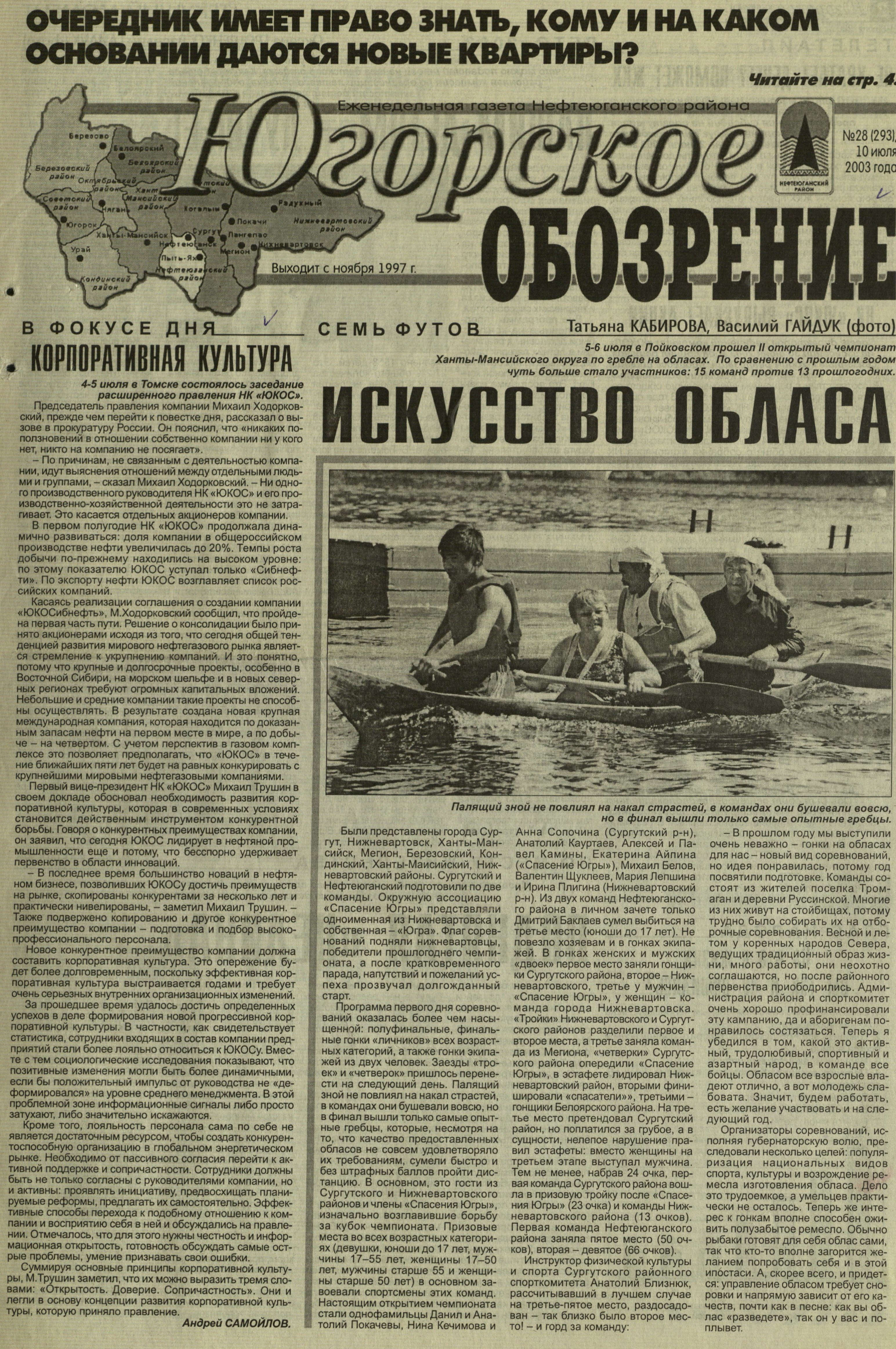 Источник: газета "Югорское обозрение", 2003 год, №28
