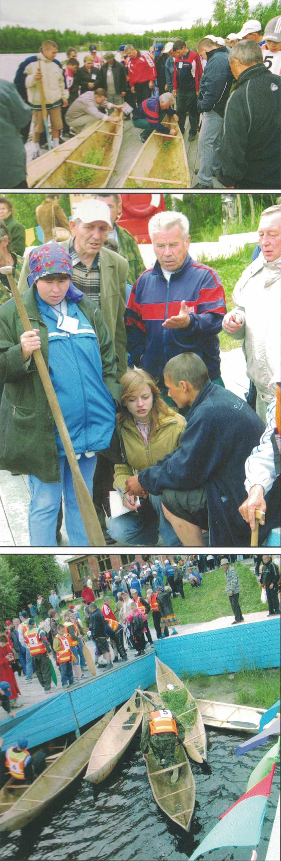 Старейшина сургутской делегации 66-летний Владимир Сопочин, собственноручно выстрогавший не один десяток облагав, еще раз внимательно осматривает лодки, на которых его подопечным через несколько минут предстоит выйти на старт. Оказалось, что, несмотря на внешнюю схожесть конструкции, технология изготовления обласа в разных районах существенно отличается.