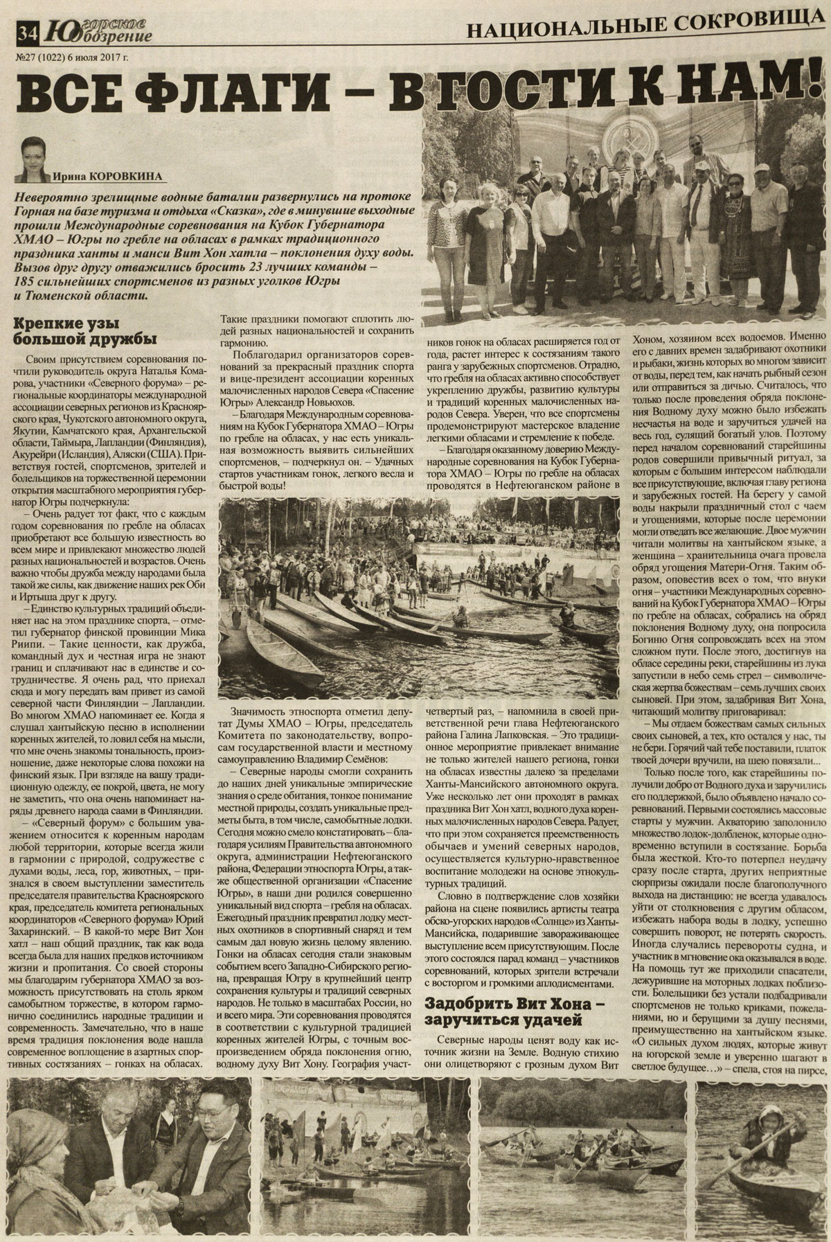 - Очень радует тот факт, что с каждым годом соревнования по гребле на обласах приобретают все большую известность во всем мире и привлекают множество людей разных национальностей и возрастов. Очень важно чтобы дружба между народами была такой же силы, как движение наших рек Оби и Иртыша друг к другу.