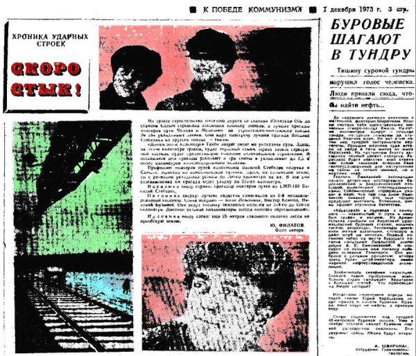 «От станции Тюмень до станции Юганская Обь» (газеты «К победе коммунизма» №136, 1973 год)