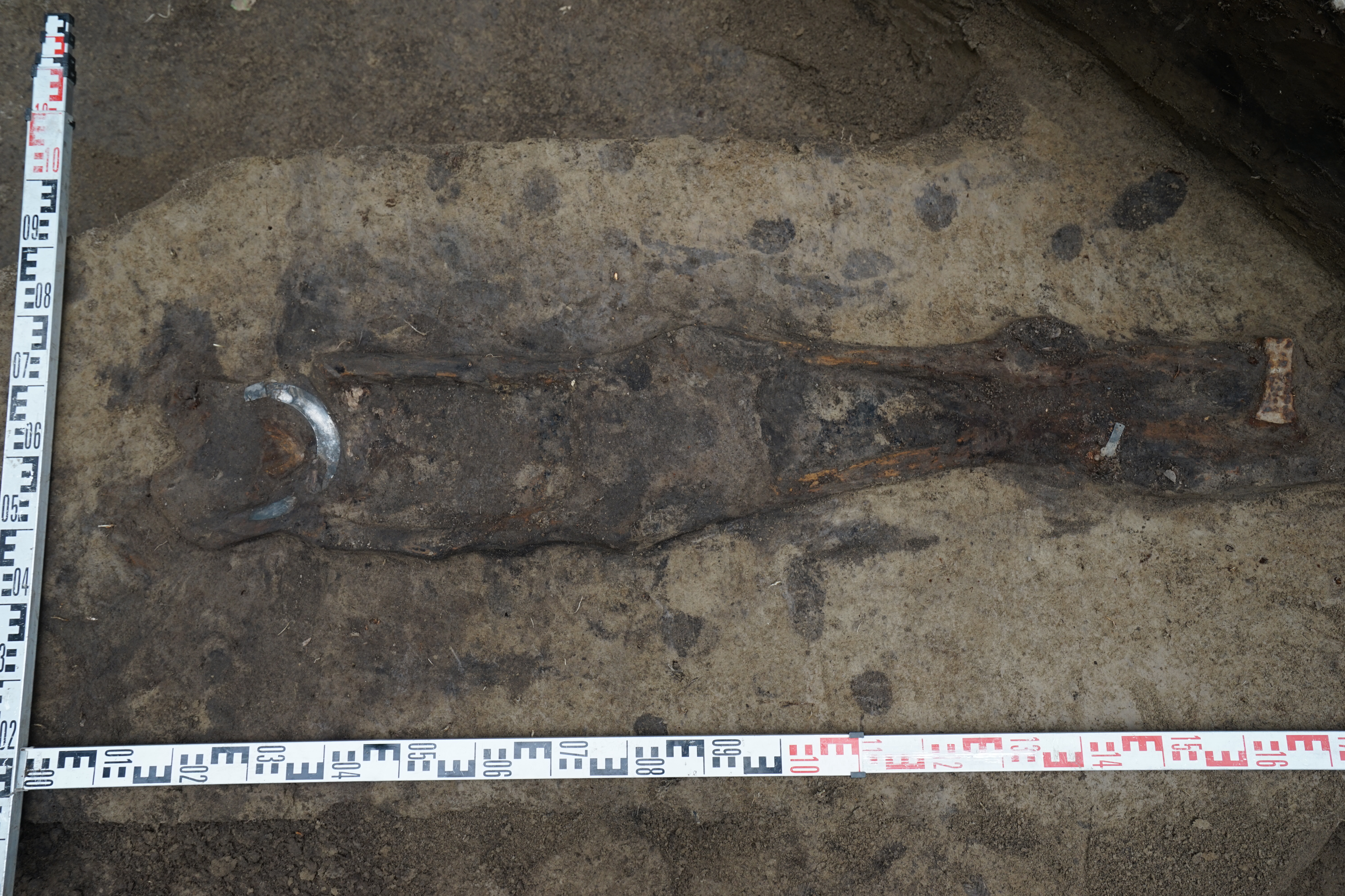 Очередное, семнадцатое погребение в этом сезоне обнаружили в Священной Кедровой Роще школьники Салымской школы №2 во время работы на раскопках в Трудовом археологическом лагере. Ребята зацепили край серебряной пекторали — нагрудного украшения, которое маркировало принадлежность погребенного к семье вождя.